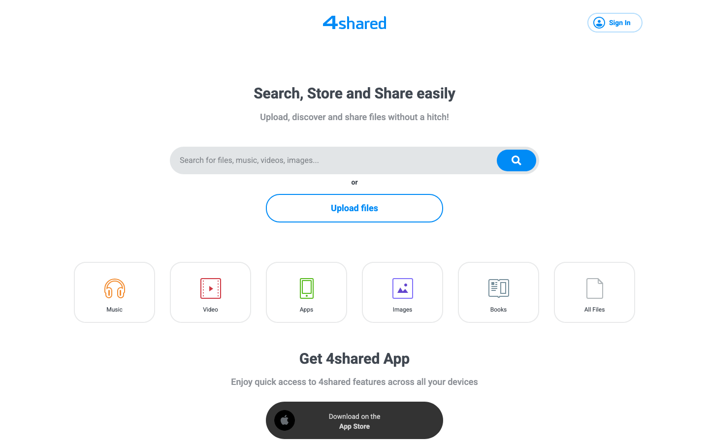 A screenshot of the 4Shared landing page.