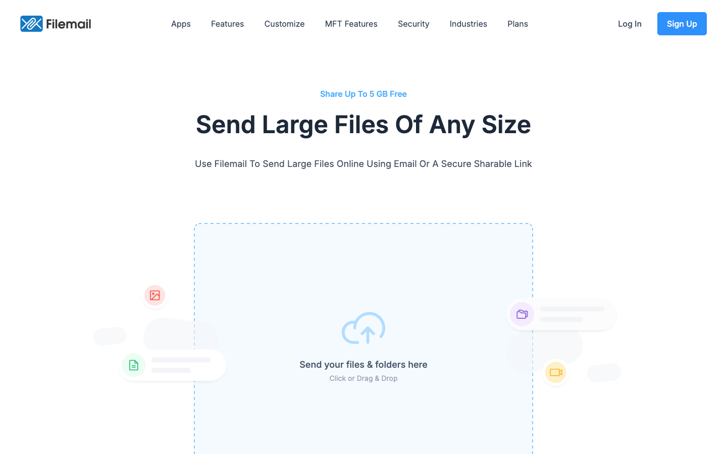 A screenshot of the FileMail landing page.