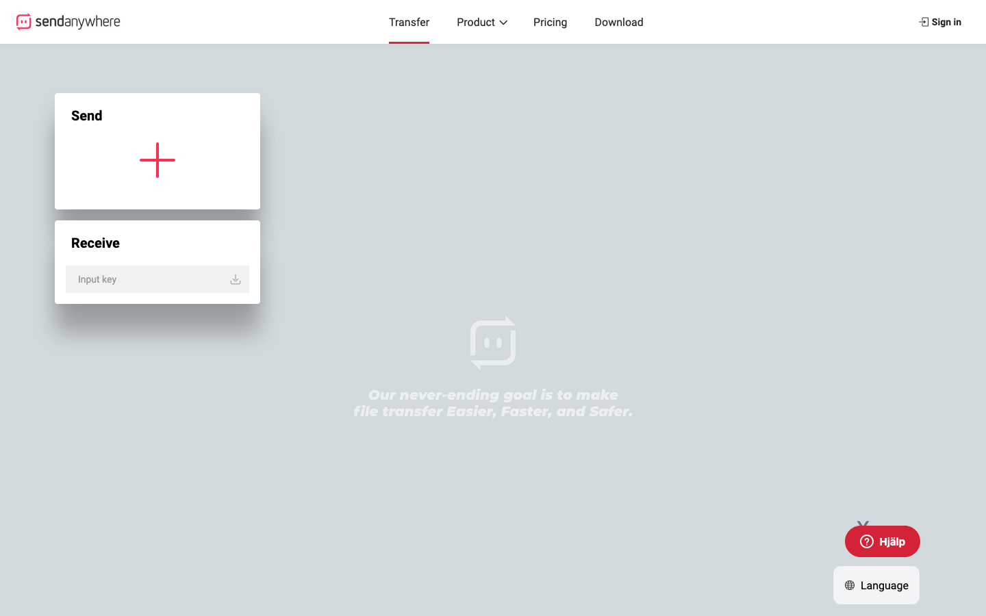 A screenshot of the Send Anywhere landing page.